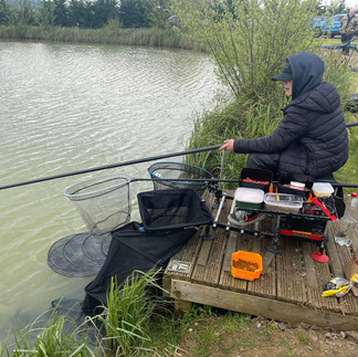Being on the end peg is always an advantage and Finley used this to great effect. Having all the legs on your seat box is also a great advantage. Thankfully, Finley had sourced replacements for the ones that had 'gone for a walk'. (Legs, Walk, get it? Laugh it up, that's as good as it gets!). He had a cracking day to open his 2024 account by catching plenty of margin Carp over the four-hour match. One more fish would have seen Fin break into triple figures, but the door was slammed in his face at 99lbs 12ozs. We loved seeing him back, we loved Charlotte, and we particularly loved the bucket hat! Flobber dob dob! (Ask your granny!)